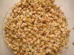 Le sarrasin germe très facilement. Choisissez bien des graines décortiquées. Faites-les tremper de 2 à 4 heures. Ensuite gardez-les humides en les rinçant 2 à 3 fois parjour. Elles vont devenir gluantes mais cela disparaitra au fur et à mesure des rinçages. Le sarrasin germé à la particularité de pouvoir être consommé, déjà, au bout de 24 heures et jusqu'au 10ème jour, contrairement aux céréales que l'on ne mange pas à un stade de germination avancé.
